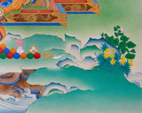 This thangka, being extra-large, provides a captivating focal point for meditation practice, drawing the practitioner into a deeper state of contemplation and mindfulness. The use of natural pigments not only enhances the aesthetic appeal but also aligns with the traditional methods used by master painters in Nepal, ensuring the thangka's authenticity and spiritual potency.