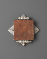 The Flower Design Ghau Box Locket is a stunning handcrafted Tibetan pendant that holds spiritual artifacts, mantras, or prayers. This locket, which is 7.5cm high and 7.5cm wide, is crafted from silver and features semi-precious Coral and Turquoise stones that symbolize protection, healing, and abundance. The flower design in the middle depicts spiritual development, blossoming wisdom, and the beauty of life's natural cycle. This precious amulet is perfect for anyone seeking spiritual direction, inner serenity, and heavenly favors.