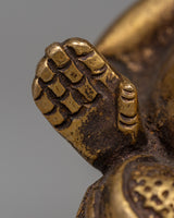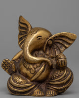 This statue is small, but it makes a big impression—it weighs 0.45 kg. Its durability and classic elegance are attributed to the brass material, which will ensure that it is treasured for many years to come. From Ganesh's expressive face to the elaborate patterns on his clothing, every detail has been meticulously and painstakingly captured.
