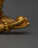 Ganesh Copper Gold-Plated Statue with Cora Stones | Handmade Altar Art
