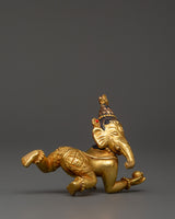 Ganesh Copper Gold-Plated Statue with Cora Stones | Hindu Ganesha Figurine