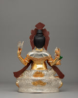 The statue's intricate details depict the deity sitting in a traditional lotus base, representing serenity and meditation. His four arms are elegantly positioned, holding symbolic items such as a modak (sweet), which means spiritual nourishment; a lotus flower, which represents purity; and a goad and noose, which are tools used to remove obstacles in life. The elephant head is exquisitely designed, with every curve of the trunk and tusks highlighted in fine detail. The gold and silver plating gives the statue a luxurious finish that enhances its divine appeal, making it appropriate for sacred spaces and artistic collections.