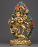Hand-Carved Ganesha Statue Gilded with 24k Gold