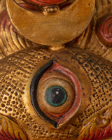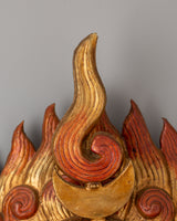 Our Garuda face wall hanging's elaborate design features a commanding and elegant framework, with the bird's wide eyes and strong beak signifying alertness and clarity. The flames around the face symbolize change and the eradication of ignorance, while the third eye, which is prominently displayed, stands for spiritual insight and wisdom. This artwork is a priceless treasure to add to your Buddhist shrine or meditation area because every component has deep spiritual significance. In addition to enhancing its visual appeal, the electrogold plating captures the spiritual atmosphere that is connected to Garuda in the Buddhist tradition. For those looking to add strength, protection, and enlightenment to their spiritual journey, this wall hanging is ideal.