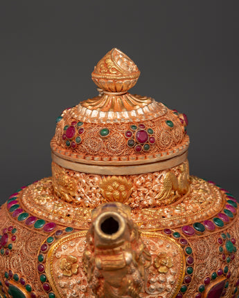 Gemstone Embellished Tea Pot | Handcrafted Tibetan Copper Tea Kettle