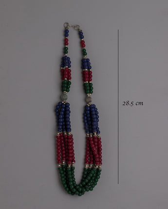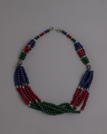 Presenting the Gemstones Jewelry Necklace, an exquisitely made products that skillfully combines classic craftsmanship with vivid, striking gemstones. This gorgeous necklace is made of white metal, weighs 0.108 kilogram, and is decorated with artificial turquoise, coral, and lapis lazuli stones. It is 28.5 cm long. The elaborate pattern and brilliant gemstone choices are a reflection of Tibetan jewelry's rich creative and historical tradition.