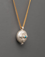Silver-plated Buddhist Prayer Box Locket with Genuine Turquoise