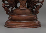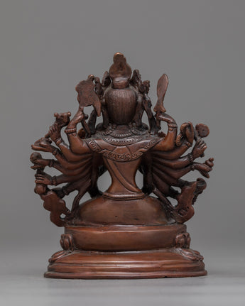 The oxidized copper body's antique polish highlights the delicate details of Goddess Cundi's robes and serene countenance, giving the piece an air of timeless beauty. This little statue, weighing only 0.492 kg, is ideal for anyone looking to bestow wisdom and compassion upon people around them.