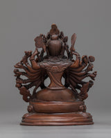 Presenting the Goddess Cundi Oxidized Statue, a tranquil representation of the esteemed Bodhisattva renowned for her empathetic discernment and capacity to grant desires. This statue, which is 12 cm (4.7 inches) tall and rests on a 9.5 cm (3.7 inch) base, was carefully handmade from oxidized copper. It is the perfect addition to meditation rooms, modest altars, or personal shrines.