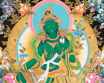 Goddess Green Tara Thangka | Cotton Canvas Hand Painting | Religous Wall Decor