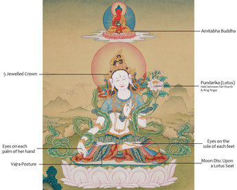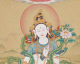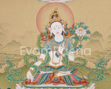 Goddess White Tara With Amitabha Thangka | Healing, Longevity and Spiritual Protection
