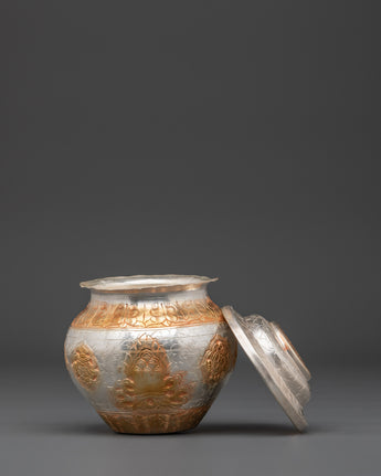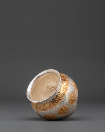 Gold And Silver Plated Ritual Rice Pot | Spiritual Offering Artifact