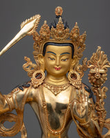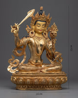Gold Gilded Manjushri Meditation Practice Statue | Traditional Bodhisattva Art