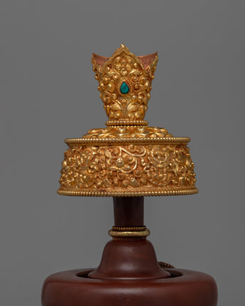 This perfect pair of Gold-Plated Ritual Vases for Buddhist Ceremonies will complement any sacred area or ceremonial setting. Traditionally employed in Tibetan Buddhist rituals, these offering vessels represent abundance, cleanliness, and spiritual connection. Their elaborate design and lovely gold-plated finish make them both practical and decorative.