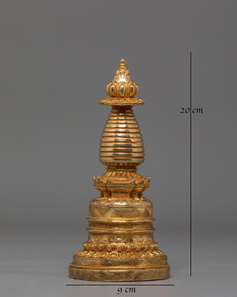 Spiritual Gold Plated Sacred Buddhist Stupa | Copper Stupa