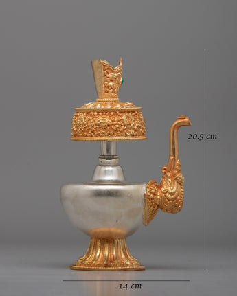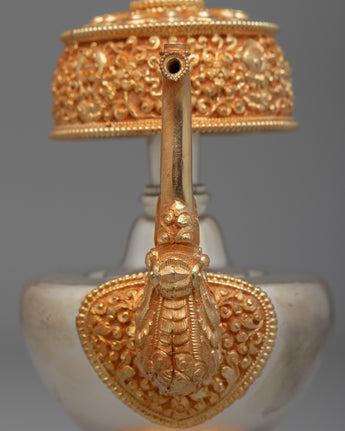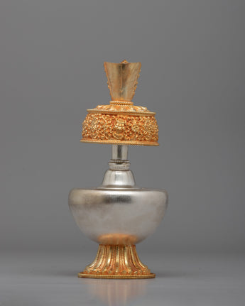 Gold & Silver Plated Sacred Vase for Spiritual Practices | Sacred Water Offering Artifact for Purification