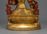 Handcrafted Golden Statue of Green Tara, Mother of Compassion, Female Buddha