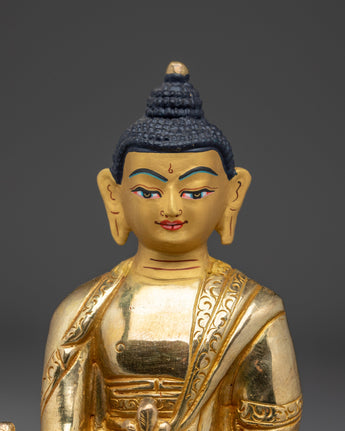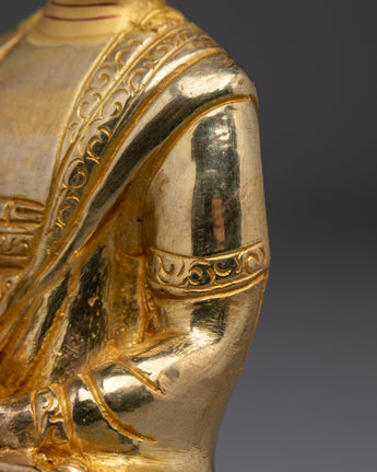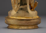 This handcrafted statue measures 5.9” (15 cm) in height and 3.9” (10 cm) at the base, weighing 0.63 kg. Made from a copper body and richly adorned with 24K gold gilding, it is further enhanced with detailed gold and acrylic paintings. Expertly created by skilled Nepali artisans, this refined piece embodies traditional craftsmanship and spiritual elegance, making it a meaningful addition to altars, meditation spaces, or personal spiritual collections.
