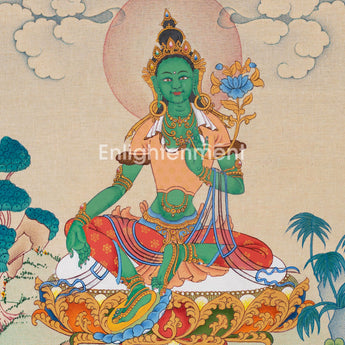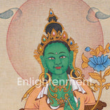 The Grace of Green Tara, A Hand Painted Thangka For Decor