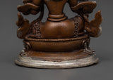 Green Tara Buddhist Goddess of Compassion | Oxidized Copper & Silver Plated Statue