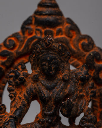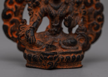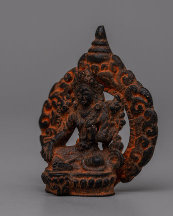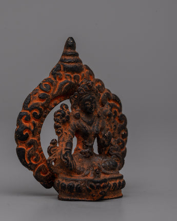 Presenting our exquisitely handmade 5cm-tall Green Tara Deity Statue, which is made of brass and copper. The caring and loving attributes of Green Tara, a respected deity in Tibetan Buddhism, who is renowned for her prompt and compassionate actions, are embodied in this statue.