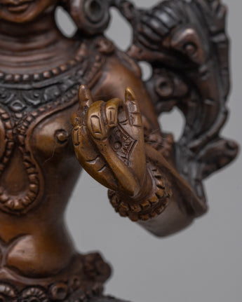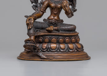 Grace and tranquility emanate from the Green Tara, who is regarded in Buddhist tradition as the epitome of enlightened activity. This handcrafted statue invites you to connect with Tara's profound lessons and blessings, with every detail demonstrating the artisan's expertise and care for the sacred.