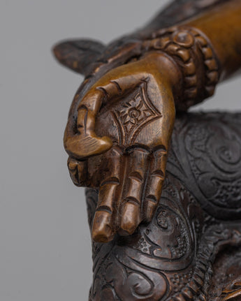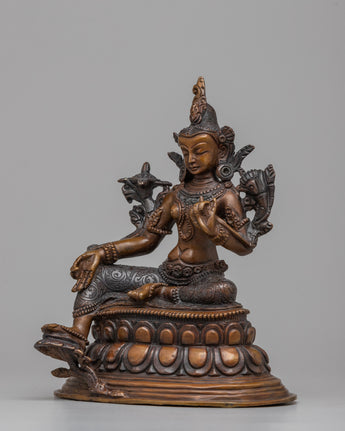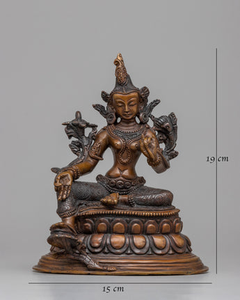 Handcrafted with precision from oxidized copper, our Green Tara Garden Statue will add a touch of serenity to your outdoor haven. This magnificent statue, which stands 19 cm tall, infuses your garden area with the spirit of heavenly protection and kindness.