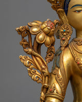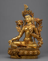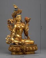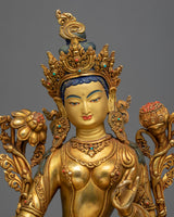 Green Tara Gold Plated Statue | Handmade Buddhist Artwork
