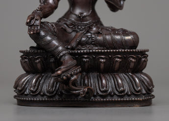 Immerse yourself in the divine grace of the Green Tara Machine-Made Statue, an artistic marvel. This 14cm copper-crafted masterpiece captures Green Tara's compassion with meticulous attention, seamlessly blending traditional symbolism and modern craftsmanship.