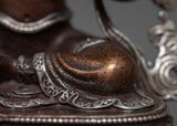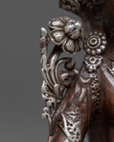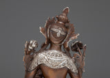Presenting our Green Tara Machine Made Statue, a celestial representation of kindness and defense. With its finely crafted oxidized copper body and silver plating, this statue perfectly reflects the elegant demeanor of Green Tara. The figurine, which is 9.5 cm tall and is carefully crafted in every detail, depicts Tara's loving and sensitive nature.