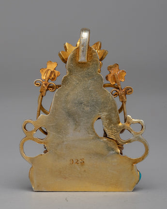 Discover the serene elegance of our Green Tara Turquoise Locket, which combines spirituality and artistry. This exquisite piece depicts the deity Green Tara, meticulously handcrafted on turquoise stone to represent peace and protection. The locket is adorned with silver and elegantly plated with 24k gold, heightening its divine allure. The intricate design is enhanced by the inlaid coral stone, which adds a vibrant touch to this sacred emblem.