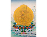 The rainbow body tradition dates back to the 8th century during the time of Guru Padmasambhava. Guru rainbow body is attained by those who defied death via forms of ascension. It is attained by those who perform years and years of meditation practice who have profound compassion for all beings.Size: 9"/22 cm (width) x 13"/33 cm (height)