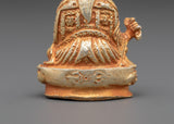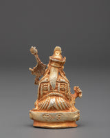 Crafted from copper and finished with a layer of radiant gold plating, this miniature Guru Rinpoche statue embodies devotion and skilled artistry. Despite its compact size of 5cm in height, it carries profound significance for practitioners seeking blessings, wisdom, and protection. The golden finish enhances its spiritual aura, symbolizing purity and enlightenment. Ideal for gifting, altar offerings, or personal practice, this piece brings the presence of Padmasambhava into your home.