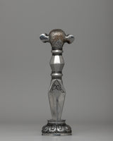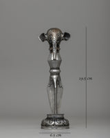 This Phurba is expertly crafted from iron by hand, and its elaborate elephant motif adds both an artistic and spiritual touch. The intricate grip signifies spiritual strength and protection, while the sharp three-sided blade depicts the piercing of ignorance. Every element demonstrates the talent and dedication of traditional artisans.