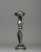 This beautifully crafted Iron Elephant-Headed Phurba, which is 19.5 cm tall and 6.5 cm wide, has an individual elephant-headed design representing stability, strength, and wisdom. With a weight of 0.65 kg, this sacred artifact is ideal for meditation, rituals, or as a unique ornament in places of worship. It is an accessible yet powerful sculpture due to its elegant and trim design.