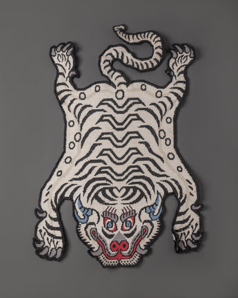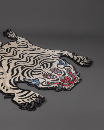 Tibetan Hand Knotted White Tiger Rug | Perfect for Any Space