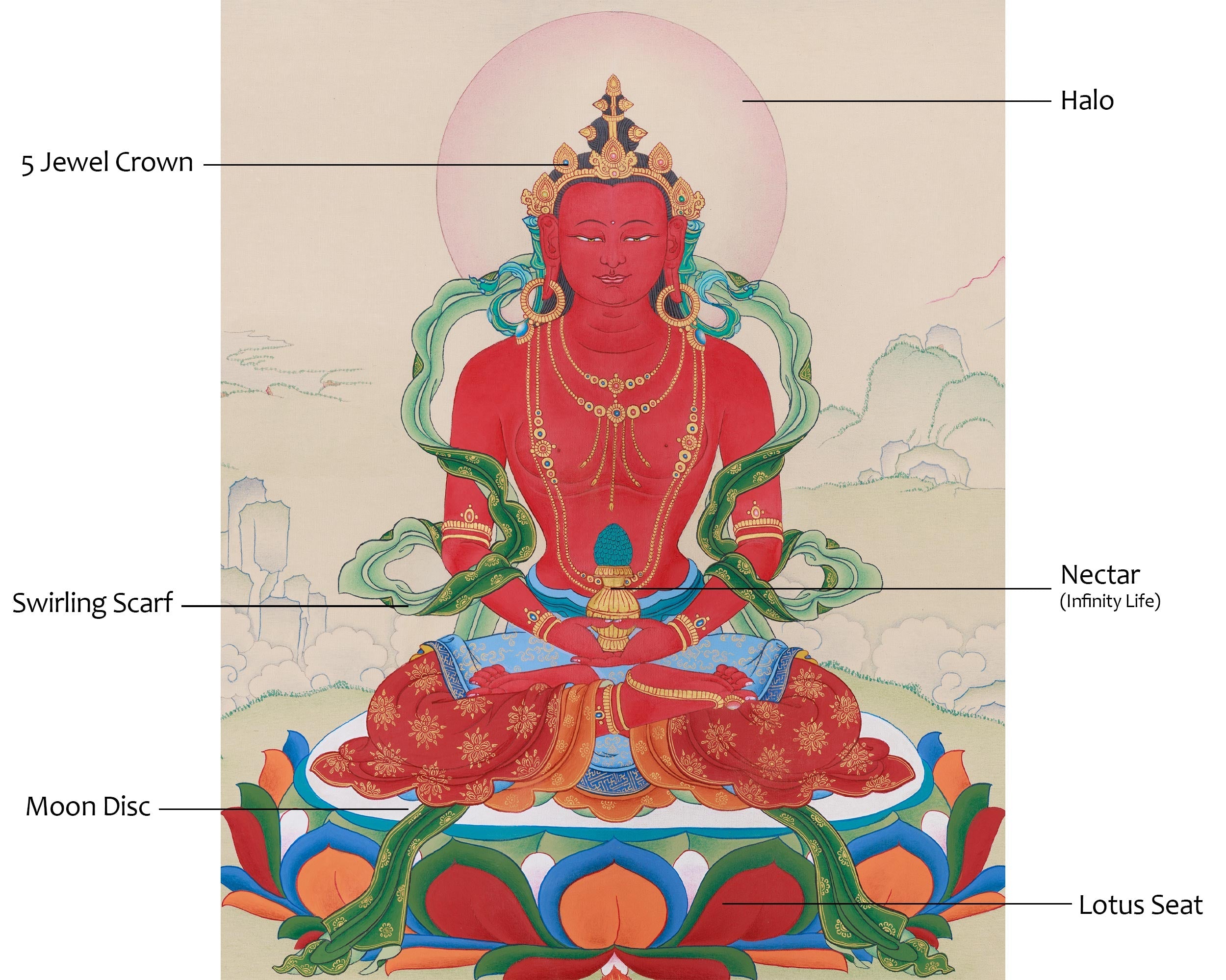 Hand-Painted Buddha Amitayus Thangka | Symbol of Long Life and Enlightened Grace