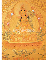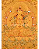 This Full Gold Chengrezig Thangka serves as an object of veneration and inspiration for practitioners. It can be used in temples, monasteries, and homes for meditation, prayer, and compassion cultivation. Overall, Chenrezig's depiction embodies the spiritual aspirations of Tibetan Buddhist practitioners and serves as a powerful reminder of compassion and enlightenment.