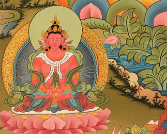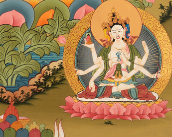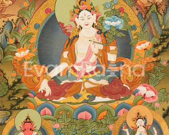 Transform your home or office into a sanctuary of peace and tranquility with our exquisite White Tara thangka. White Tara symbolizes compassion, healing, and serenity, making her a perfect addition to any space. Choose from our collection of White Tara thangkas, meticulously painted to bring grace and positive energy to your surroundings.