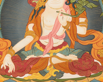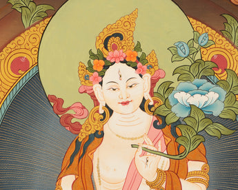 Hand-Painted White Tara Thangka: