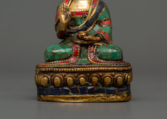 Handcrafted Amoghasiddhi Buddha -  Brass with Turquoise & Coral