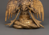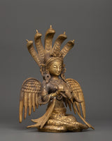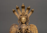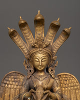 This statue, which weighs 3.87 kg and is made of brass, is incredibly well-crafted, from its calm demeanor and poised mudras to the intricate seven-headed cobra hood that guards her crown. Her wings, which stand for transcendence, contribute religious symbolism and artistic flair. Perfect for Vastu corrections, home altars, or spiritual settings, Naagkanya infuses any area with wisdom, balance, and divine feminine energy.