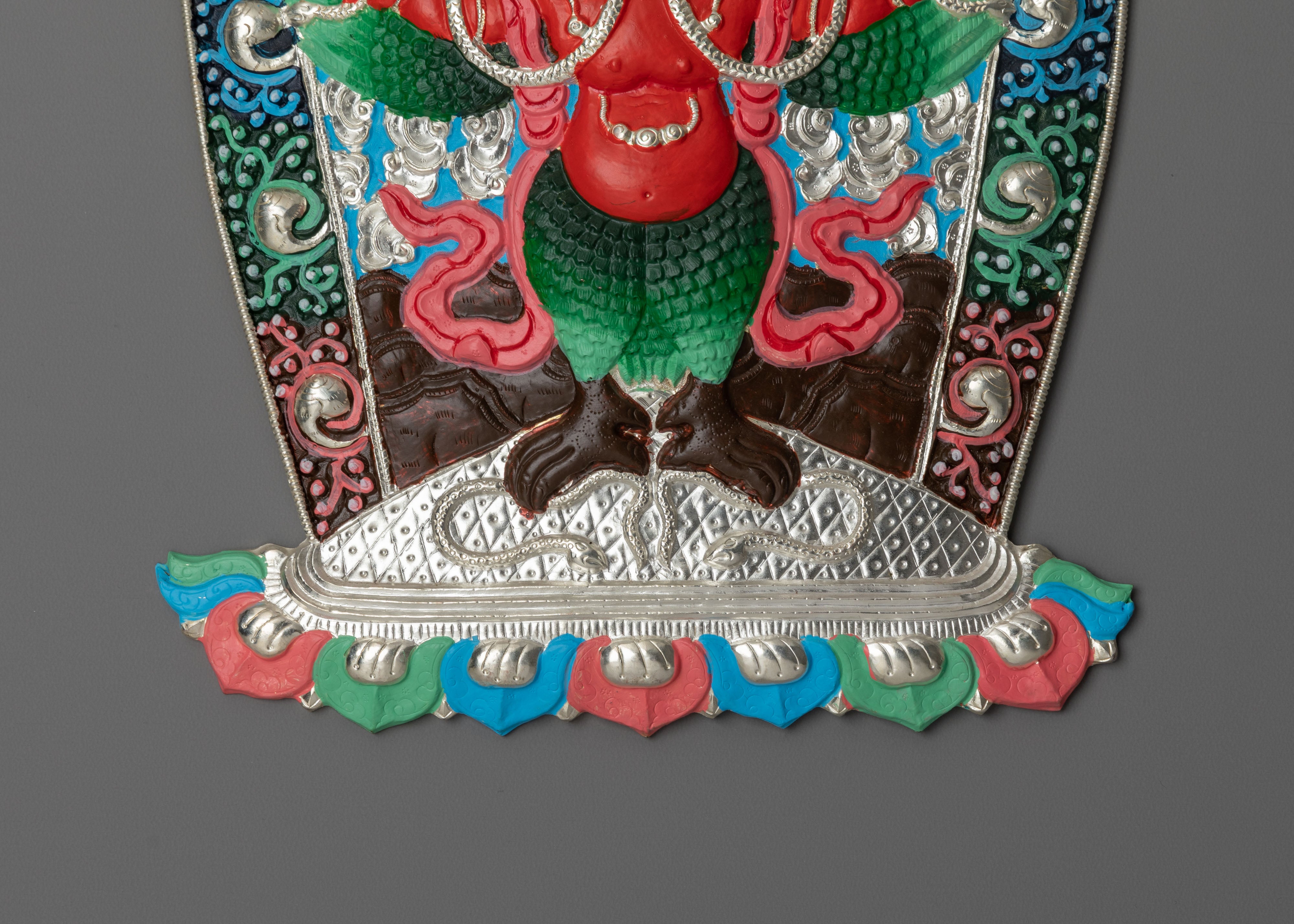 Ideal for altars, meditation rooms, or spaces dedicated to inner peace, this wall hanging invites divine protection and enlightenment into your environment. As both an artistic treasure and a sacred emblem, it radiates fearlessness, clarity, and spiritual power. This enduring guardian connects the viewer to the enlightened essence of Garuda, the celestial warrior who embodies freedom and awakening.