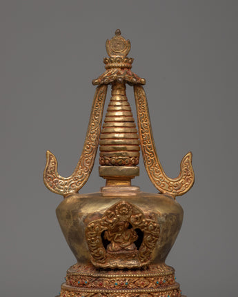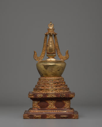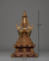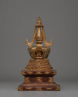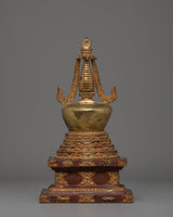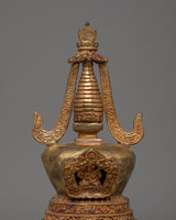 Handcrafted Buddhist Shrine Stupa | Gold Plated Tibetan Ritual Stupa Art