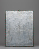 A metal thangka is a type of thangka painting that is made on a metal surface rather than on traditional canvas or paper. Metal thangkas are often made using copper, brass, or silver and are usually decorated with intricate designs and Buddhist iconography using a technique called repoussé. This involves hammering the metal from the reverse side to create a raised relief image on the front. Metal thangkas are known for their durability and are often used in ritual contexts or as decorative pieces in Buddhist homes and temples. They are particularly common in Tibet, where they have been produced for centuries.