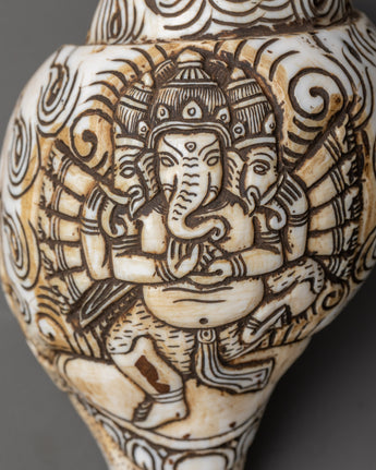 Handcrafted Ganesh Conch Shell | Sacred Shankha with Carved Ganesha Design