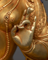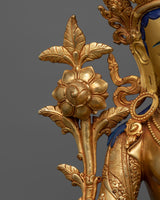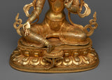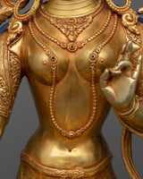 Handcrafted Green Tara Statue | 24k Gold Gilded 18.8" Sculpture