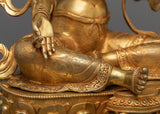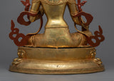 Green Tara's serene yet powerful vitality is reflected in this statue, which is meticulously created with a copper body and adorned with 24k gold gilding and beautiful acrylic paintings. Tara is shown sitting calmly on a moon disc of double Lotus seat, with the right leg outstretched and the left drawn up. In a generous gesture, the right hand is often extended across the knee.