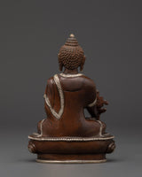 The Medicine Buddha statue is crafted to connect you with profound healing energies and positive vibrations. A silver-plated, oxidized finish enhances its authentic aesthetic, complementing the copper base. Ideal for Tibetan Buddhism practitioners, meditation enthusiasts, and anyone seeking spiritual healing, this statue serves as a meaningful addition to your sacred space.