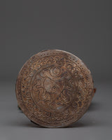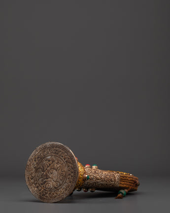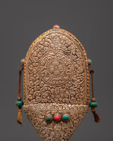 This Brass Stamp with Tibetan Loh (30cm x 11.5cm, 1.26kg) is a beautifully handcrafted ritual artifact featuring detailed animal zodiac carvings and symbolic floral patterns. Made with a white metal and brass body, it is further enhanced with artificial coral and turquoise inlay, reflecting both artistry and spiritual symbolism. In Tibetan tradition, the Loh represents the twelve zodiac animals, each linked to cosmic cycles of energy, protection, and destiny.